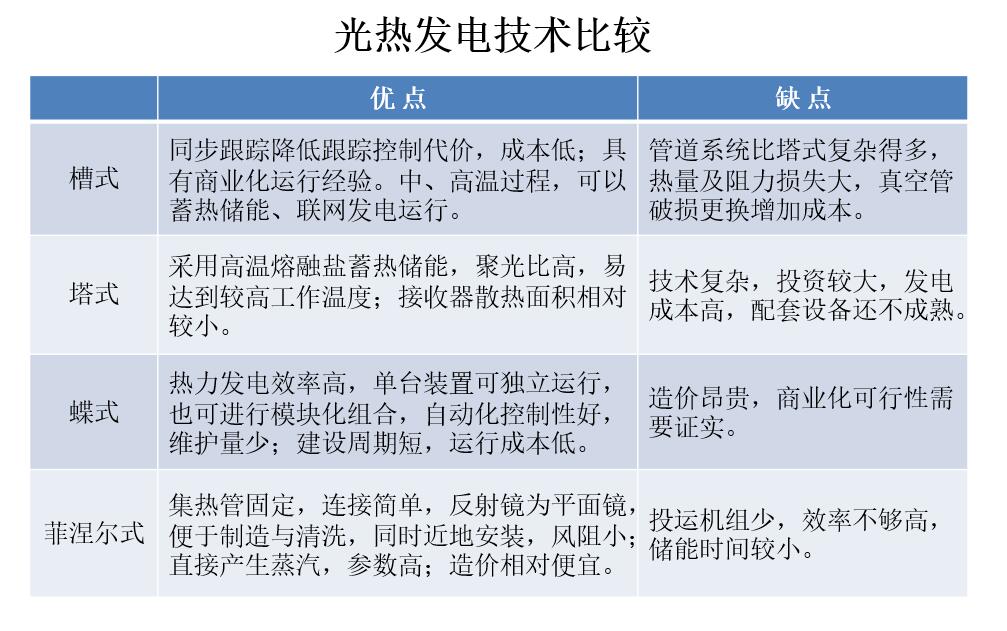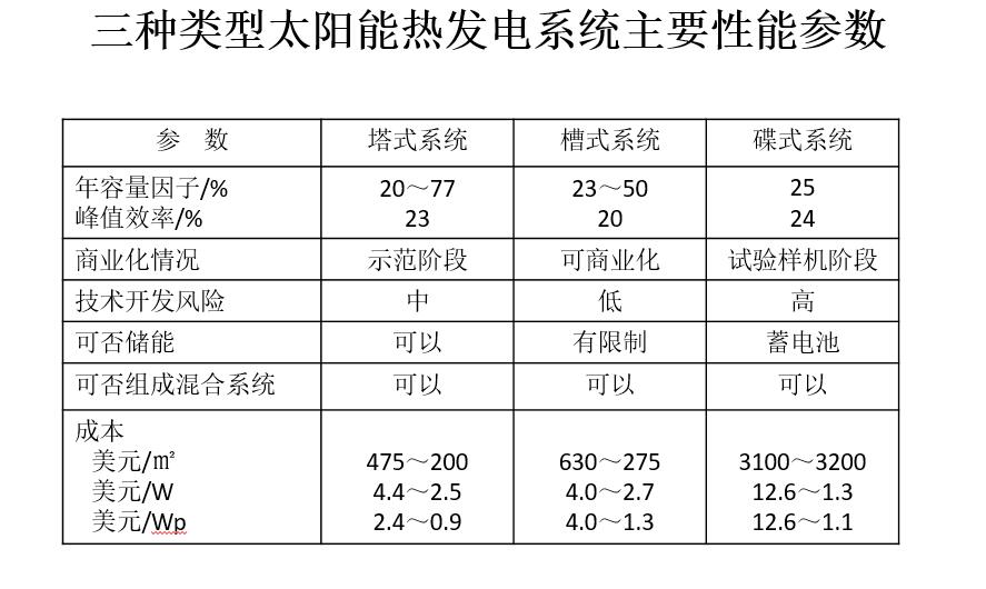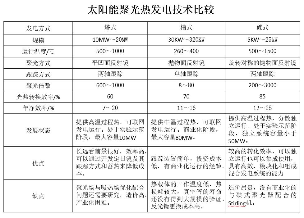 2.但塔式电站的跟踪代价高,碟式电站的能量集中代价大,二者受到了目前技术水准的限制,实现商业化尚需时日。